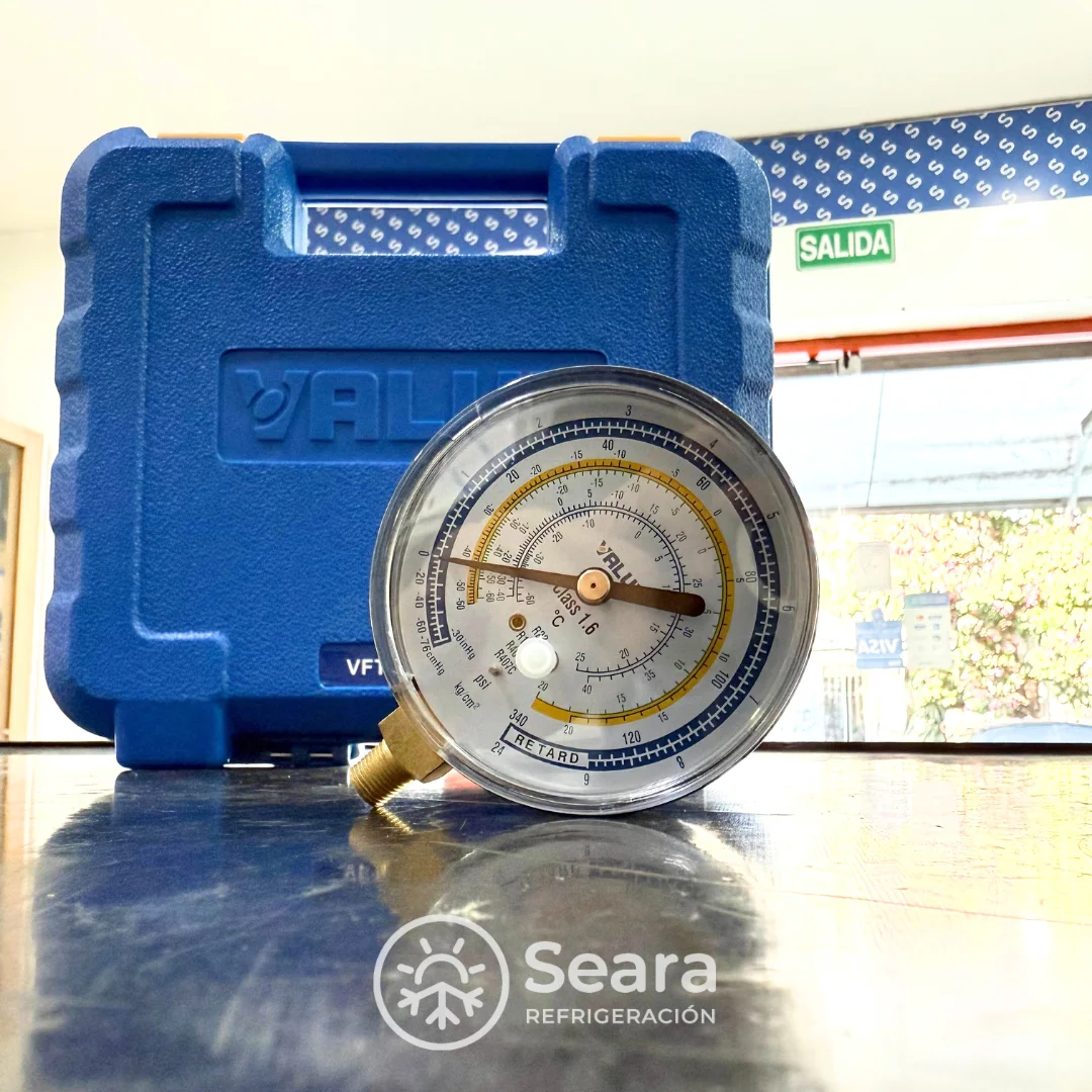 Una herramienta precisa para medir presiones en sistemas de refrigeración, compatible con refrigerantes como R22, R134A, R410A, R407C y R404A.